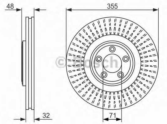 Mounting bridge: front, disc diameter: 355 mm, center hole diameter: 71 mm, number of mounting holes: 5, hole diameter: 108 mm, thread diameter: 14 mm, disc thickness: 32 mm, minimum thickness d
