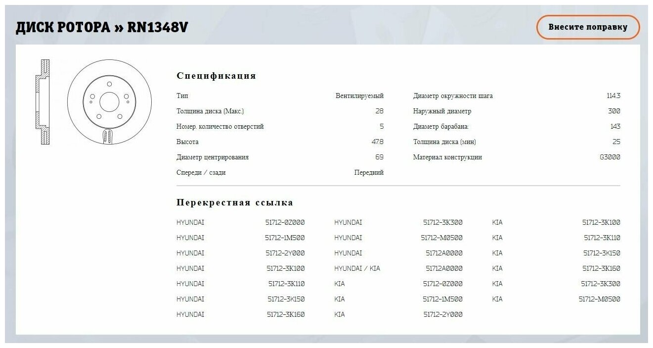 Front NIBK RN1348 300x28 for Hyundai Tucson, Hyundai Sonata