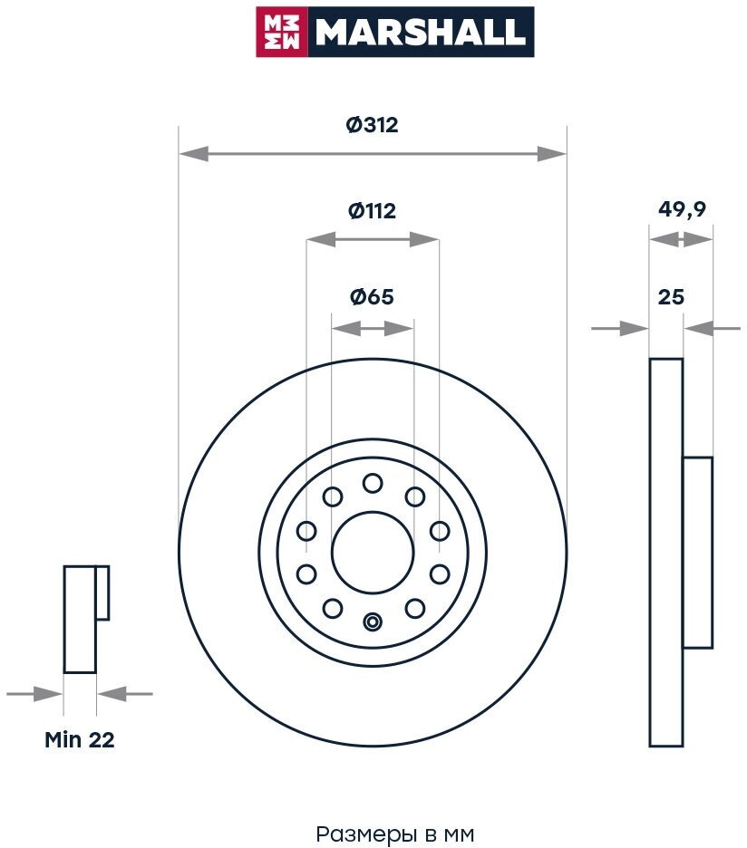 Mounting bridge: front, disc diameter: 296 mm, center hole diameter: 62 mm, number of fixing holes: 5, hole pattern diameter: 114.30 mm, center part diameter: 155 mm, disc thickness: 28 mm, min.