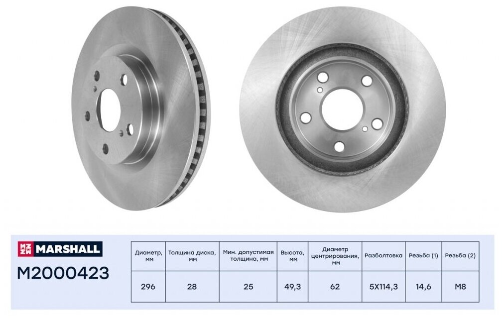 Front Marshall M2000423 296x28 Toyota Camry, Toyota RAV4