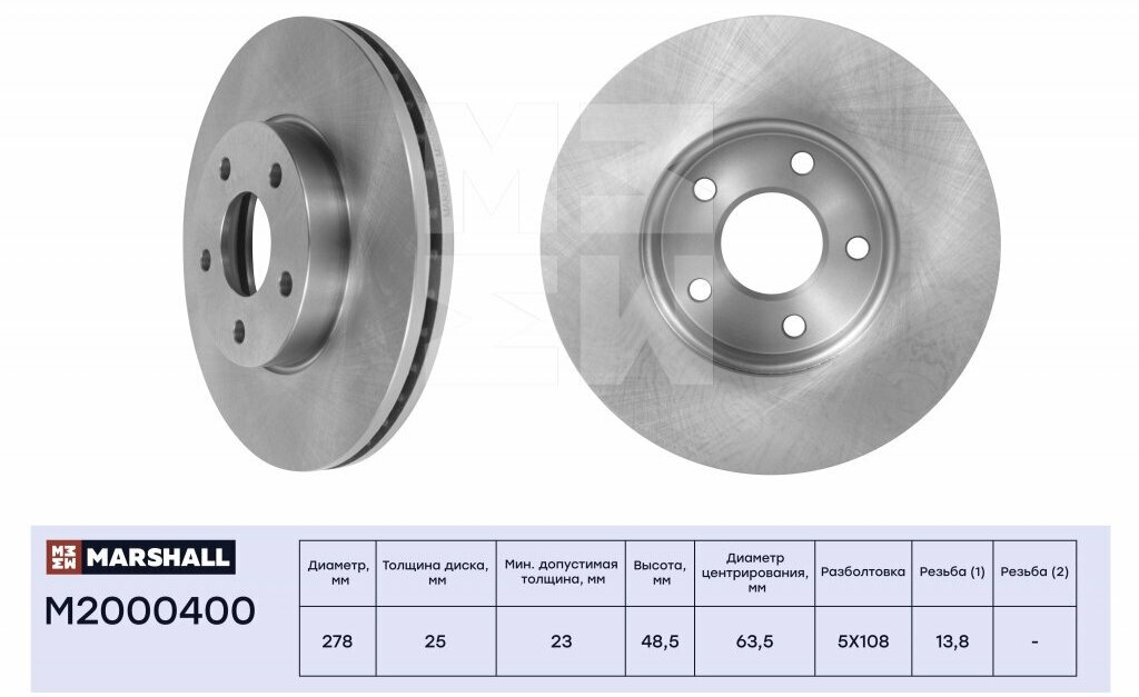 Mounting Bridge: Front, Front, Disc Diameter: 278 mm, Center Hole Diameter: 63.50 mm, Number of Mounting Holes: 5, Hole Diameter: 108 mm, Center Diameter: 148.20 mm, Disc Thickness: 25