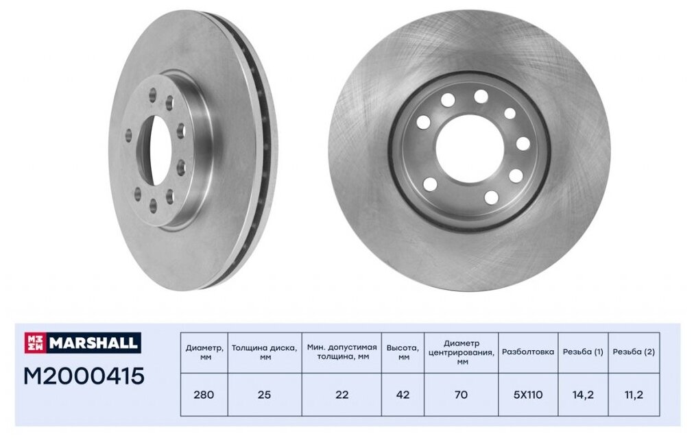 Front Marshall M2000415 280x25 Opel Astra, Opel Zafira, Opel Meriva