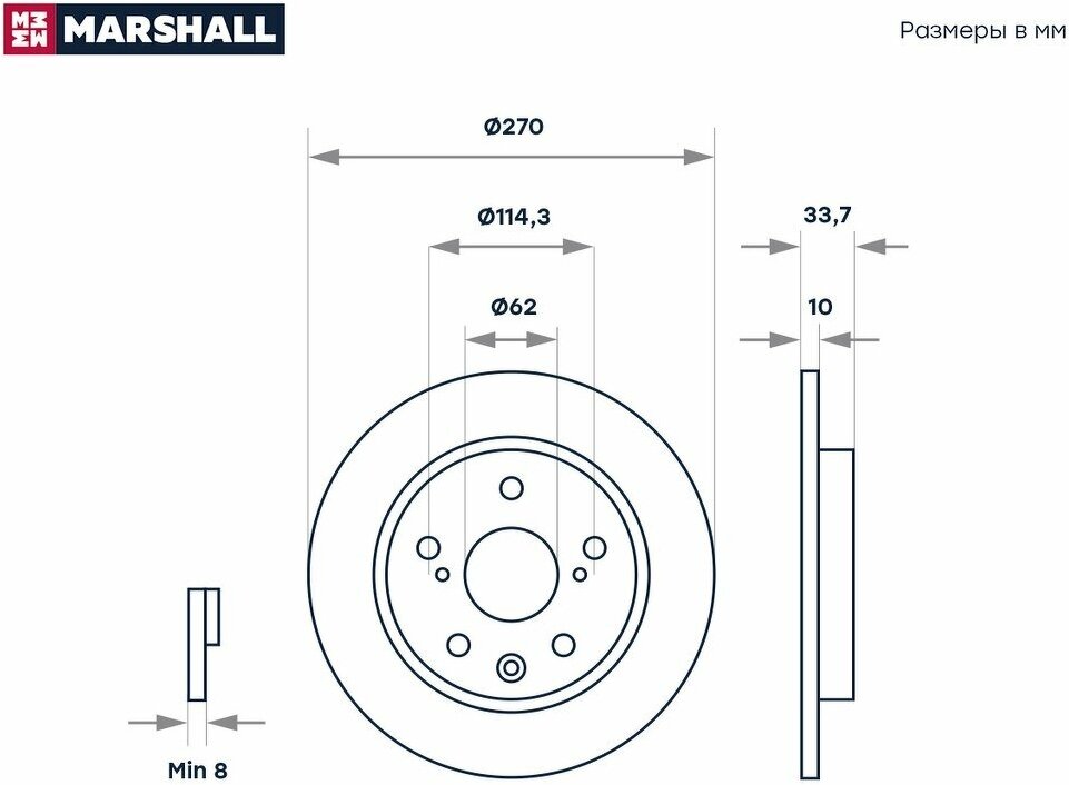 Mounting bridge: front, disc diameter: 296 mm, center hole diameter: 62 mm, number of fixing holes: 5, hole pattern diameter: 114.30 mm, center part diameter: 155 mm, disc thickness: 28 mm, min.