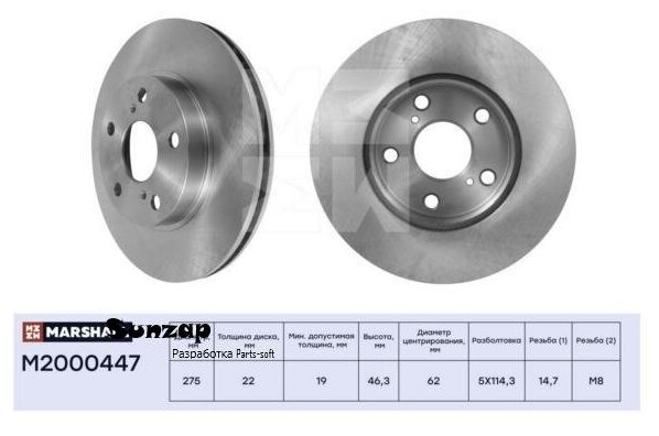 Front Marshall M2000447 275x22 Toyota Auris, Toyota Corolla