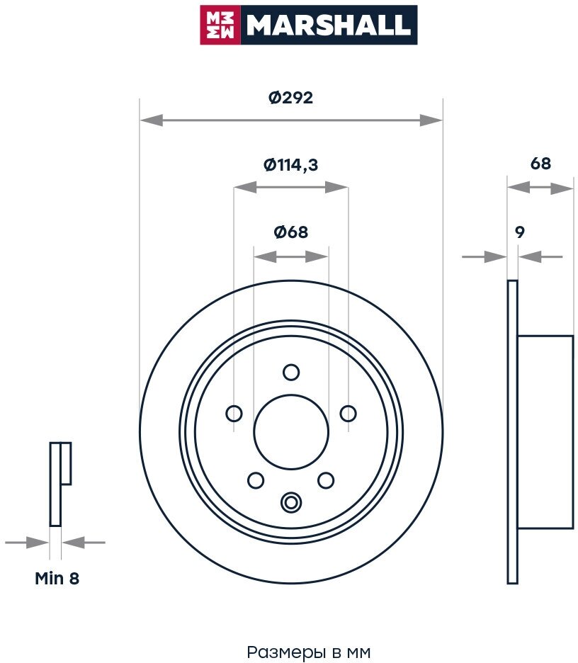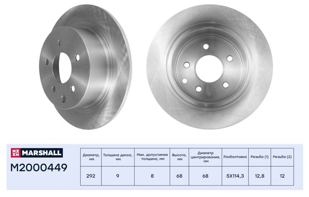 Rear Marshall M2000449 292x9 Nissan Juke, Nissan Qashqai, Nissan Teana