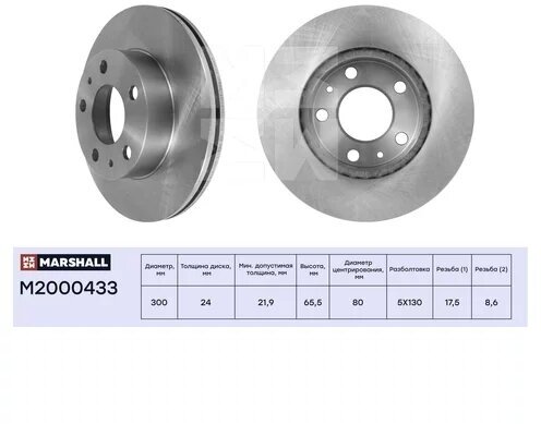 Mounting bridge: front, disc diameter: 300 mm, center hole diameter: 80 mm, number of fixing holes: 5, hole pattern diameter: 130 mm, center part diameter: 174 mm, disc thickness: 24 mm, min.