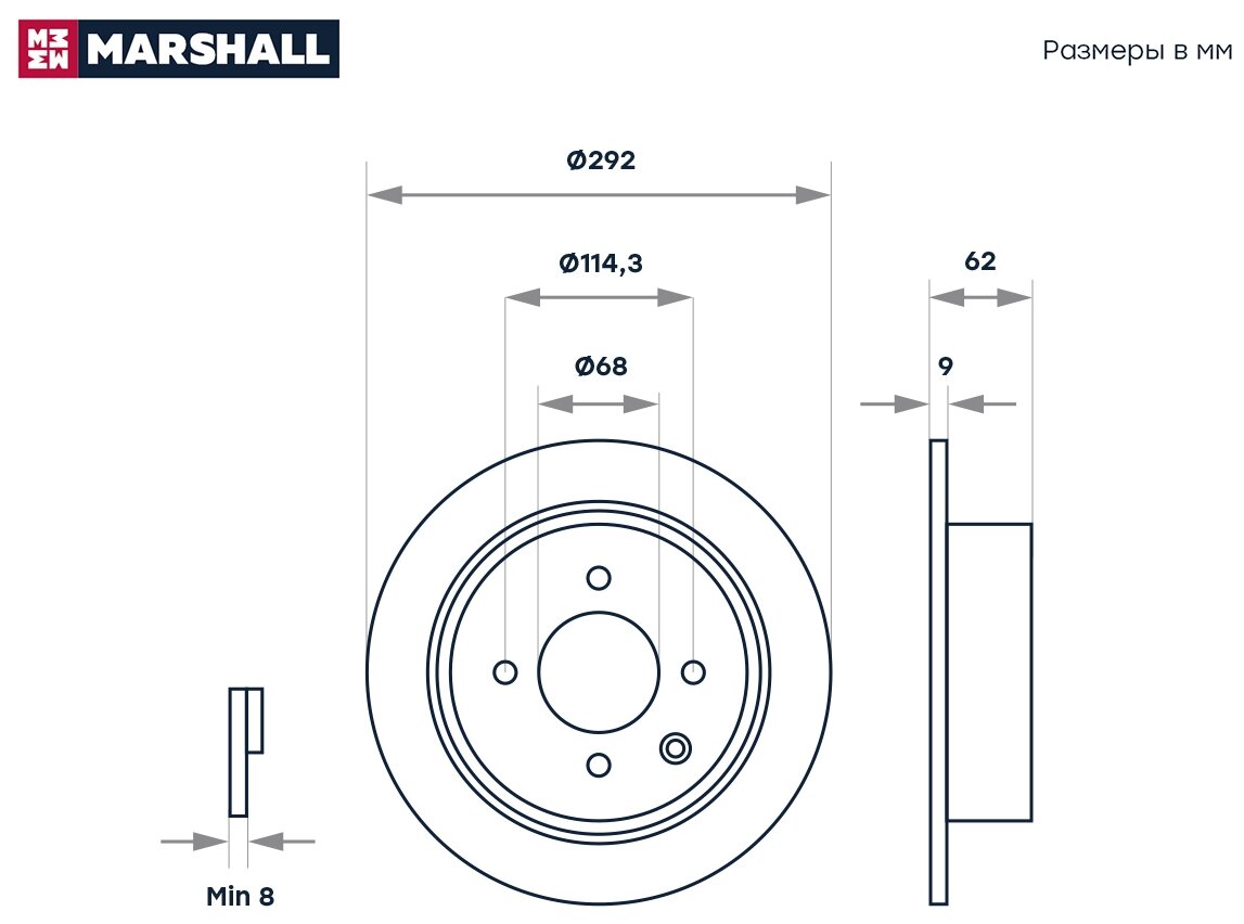 Rear Marshall M2000438 292x9 Nissan Cube, Nissan Tiida