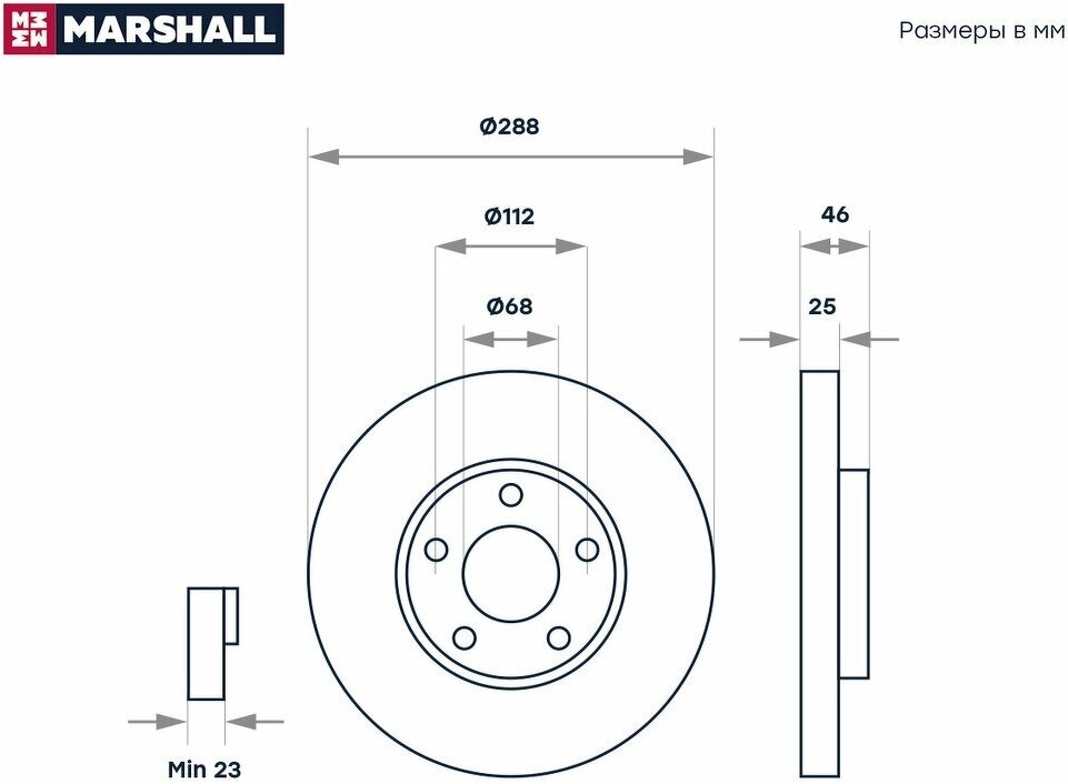 Mounting bridge: front, disc diameter: 288 mm, center hole diameter: 68 mm, number of mounting holes: 5, hole diameter: 112 mm, thread diameter: 15.30 mm, center part diameter: 148.20 mm, thickness