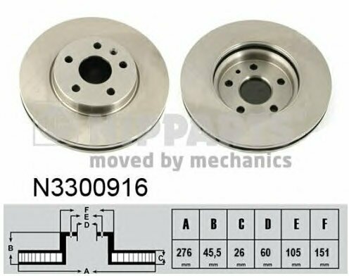 Mounting bridge: front, disc diameter: 296 mm, center hole diameter: 62 mm, number of fixing holes: 5, hole pattern diameter: 114.30 mm, center part diameter: 155 mm, disc thickness: 28 mm, min.