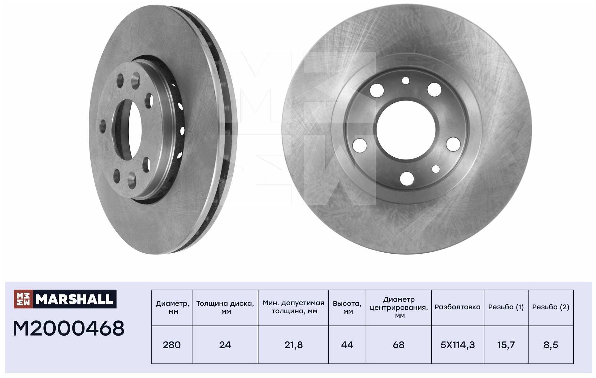 Mounting bridge: front, disc diameter: 296 mm, center hole diameter: 62 mm, number of fixing holes: 5, hole pattern diameter: 114.30 mm, center part diameter: 155 mm, disc thickness: 28 mm, min.