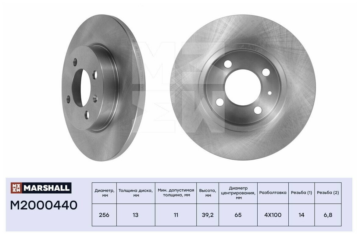 Front Marshall M2000440 256x13 Chery Amulet, Seat Toledo, Volkswagen Golf, Volkswagen Passat