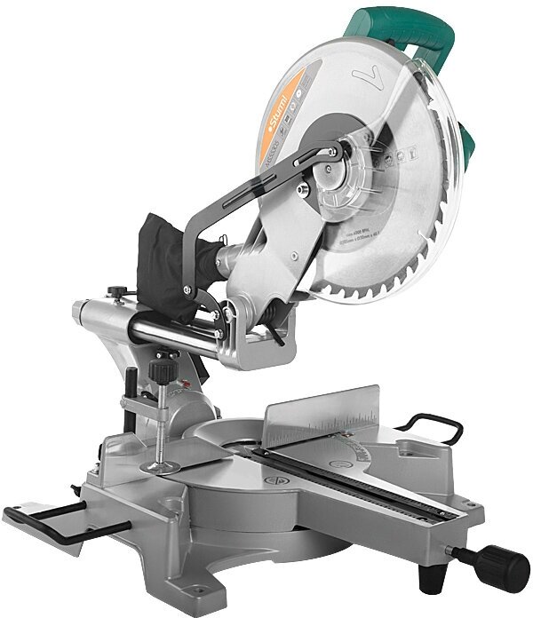 Type: miter saw, laser marker, disc diameter: 310 mm, Power W: 2200, cutting depth 90°: 100 mm, cutting width 90°: 310 mm, power supply: from the mains, design features: spindle lock, the ability to connect a vacuum cleaner