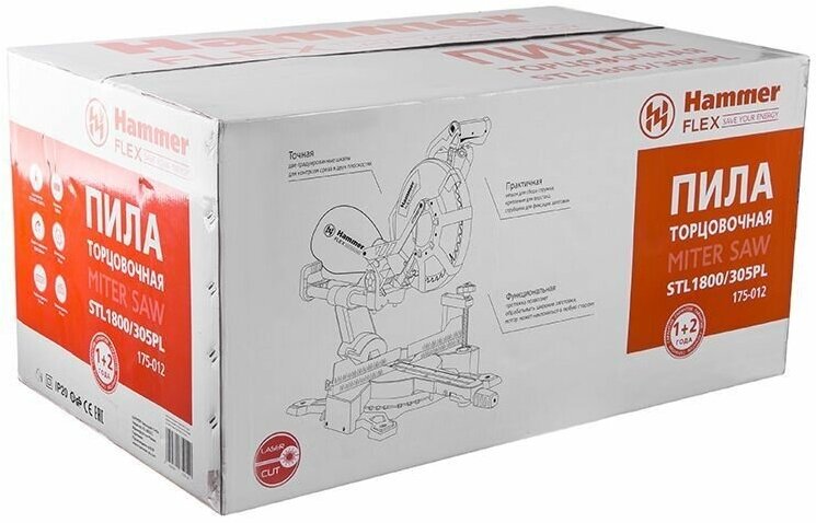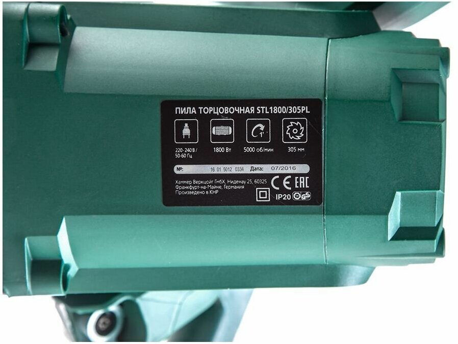 Type: miter saw, laser marker, disc diameter: 216 mm, Power W: 1500, cutting depth 90°: 65 mm, cutting width 90°: 305 mm, with pull, power supply: from the mains, design features: the ability to connect a vacuum cleaner, laser �