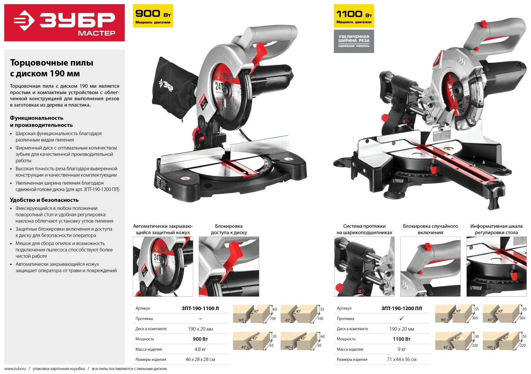Type: miter saw, laser marker, disc diameter: 216 mm, Power W: 1500, cutting depth 90°: 65 mm, cutting width 90°: 305 mm, with pull, power supply: from the mains, design features: the ability to connect a vacuum cleaner, laser �