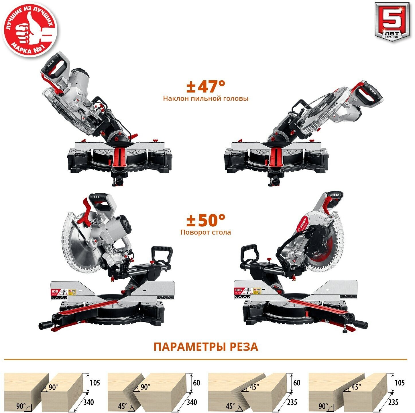 | Cutting depth 45°: |