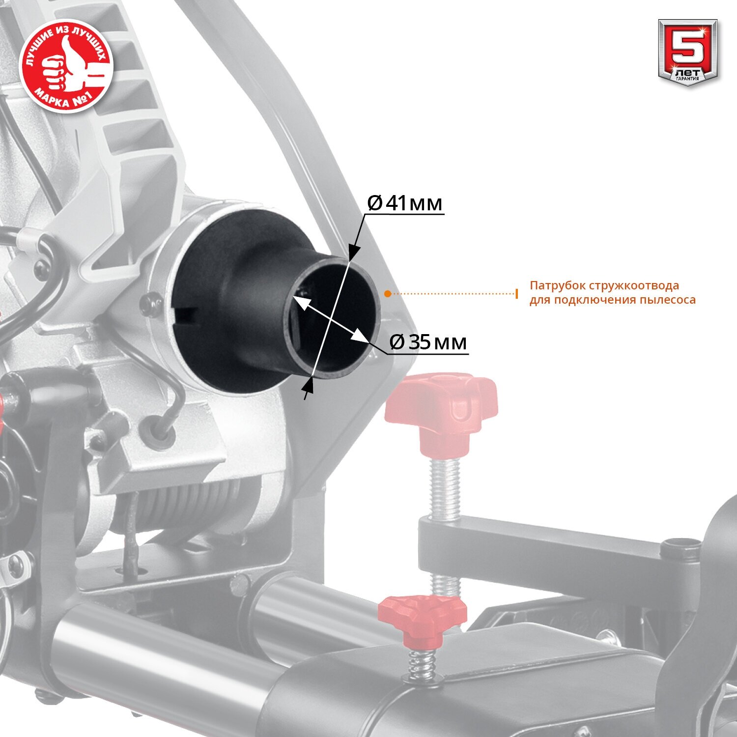 Spindle lock, vacuum cleaner connection, laser marker, dust box, in-place brush replacement, protective cover, swivel base/work table, vacuum cleaner connection, sawdust extraction system
