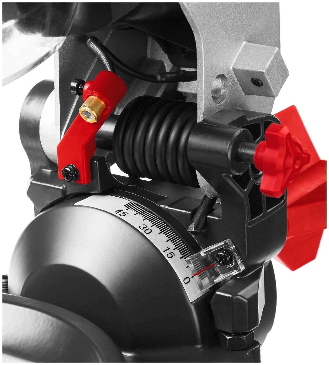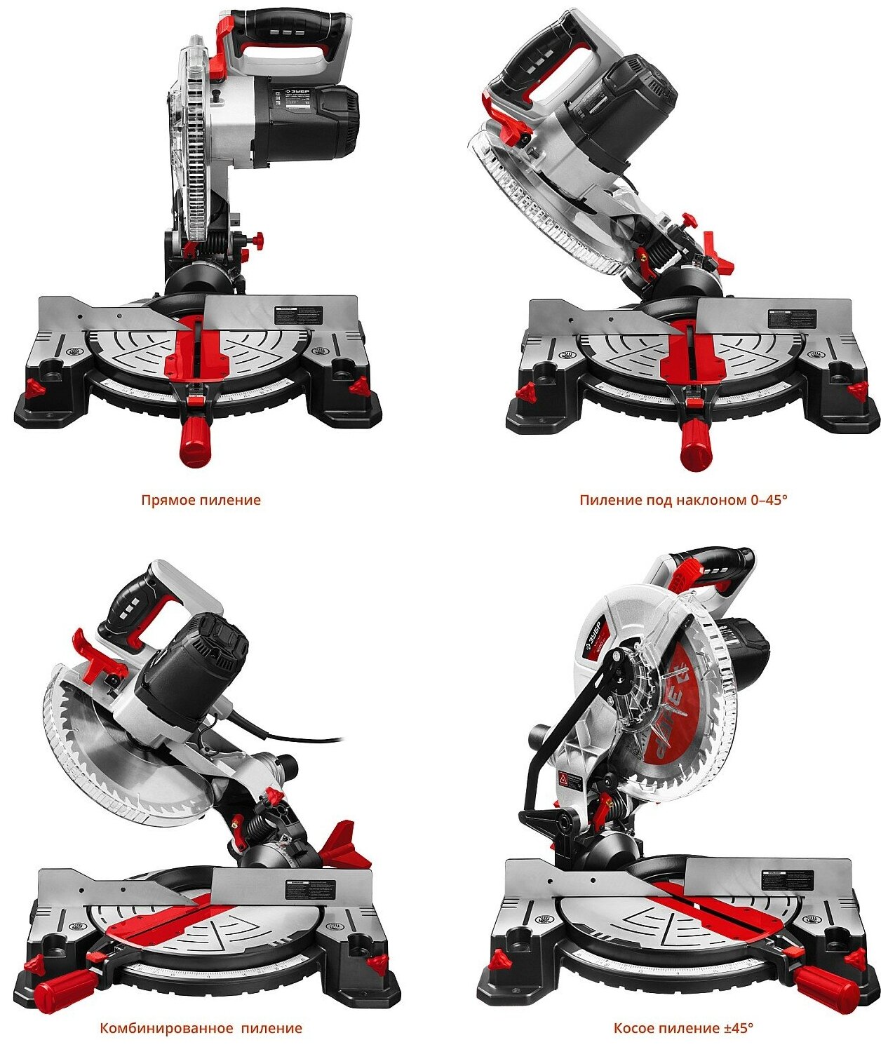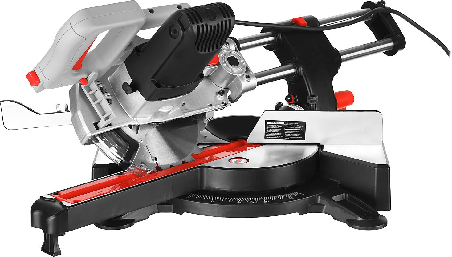 Type: miter saw, laser marker, disc diameter: 216 mm, Power W: 1500, cutting depth 90°: 65 mm, cutting width 90°: 305 mm, with pull, power supply: from the mains, design features: the ability to connect a vacuum cleaner, laser �