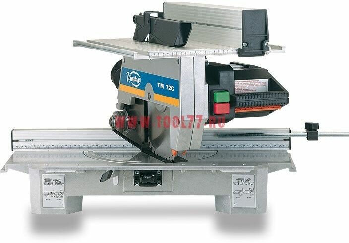 Saw blade, longitudinal guide, pusher, workpiece length limiter, service keys
