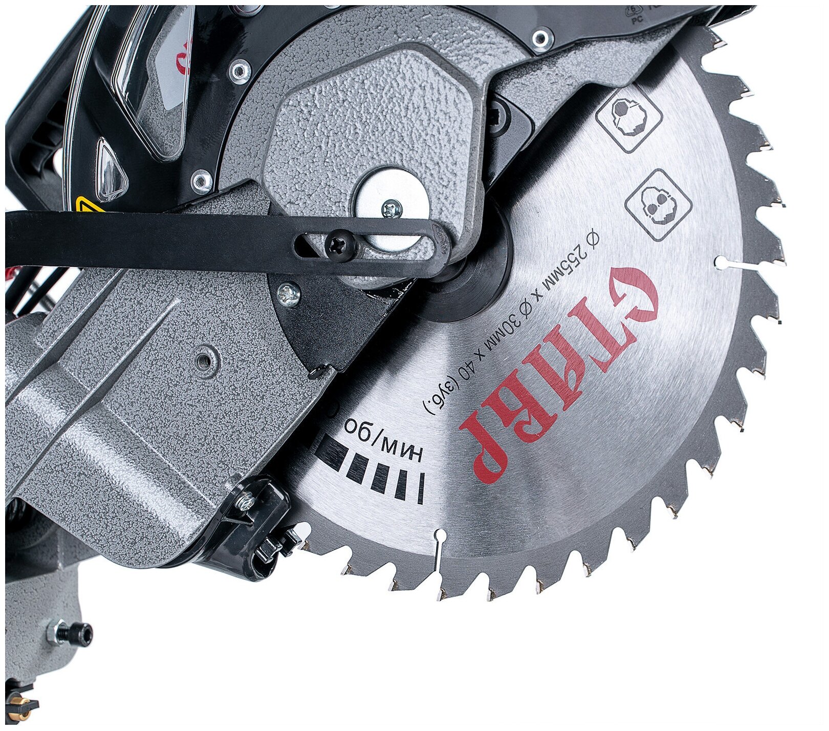 Contents of delivery: Saw Stavr PT-255/2200L, saw blade, clamp, 2 devices for extending the desktop, a bag for collecting sawdust, a hex key