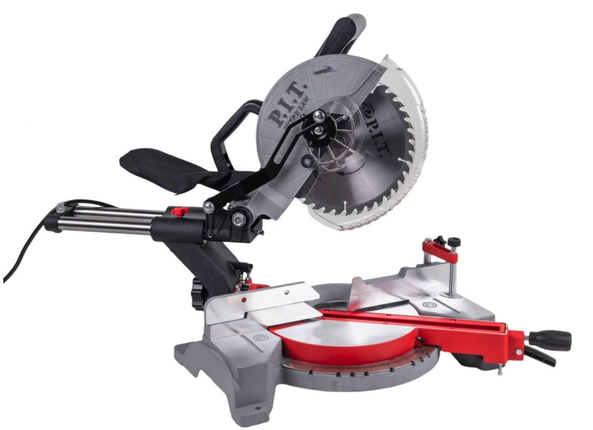 Miter saw, workpiece clamp, carbon brushes, dust collector, saw blade, instruction manual, box