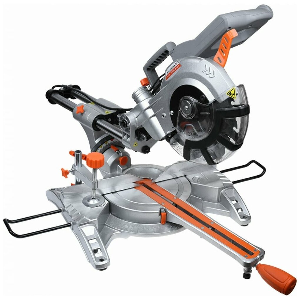 Type: miter saw, disc diameter: 210 mm, Power W: 1800, cutting depth 90°: 75 mm, cutting width 90°: 135 mm, with pull, power supply: from the mains, design features: the ability to connect a vacuum cleaner, number of speeds: 1