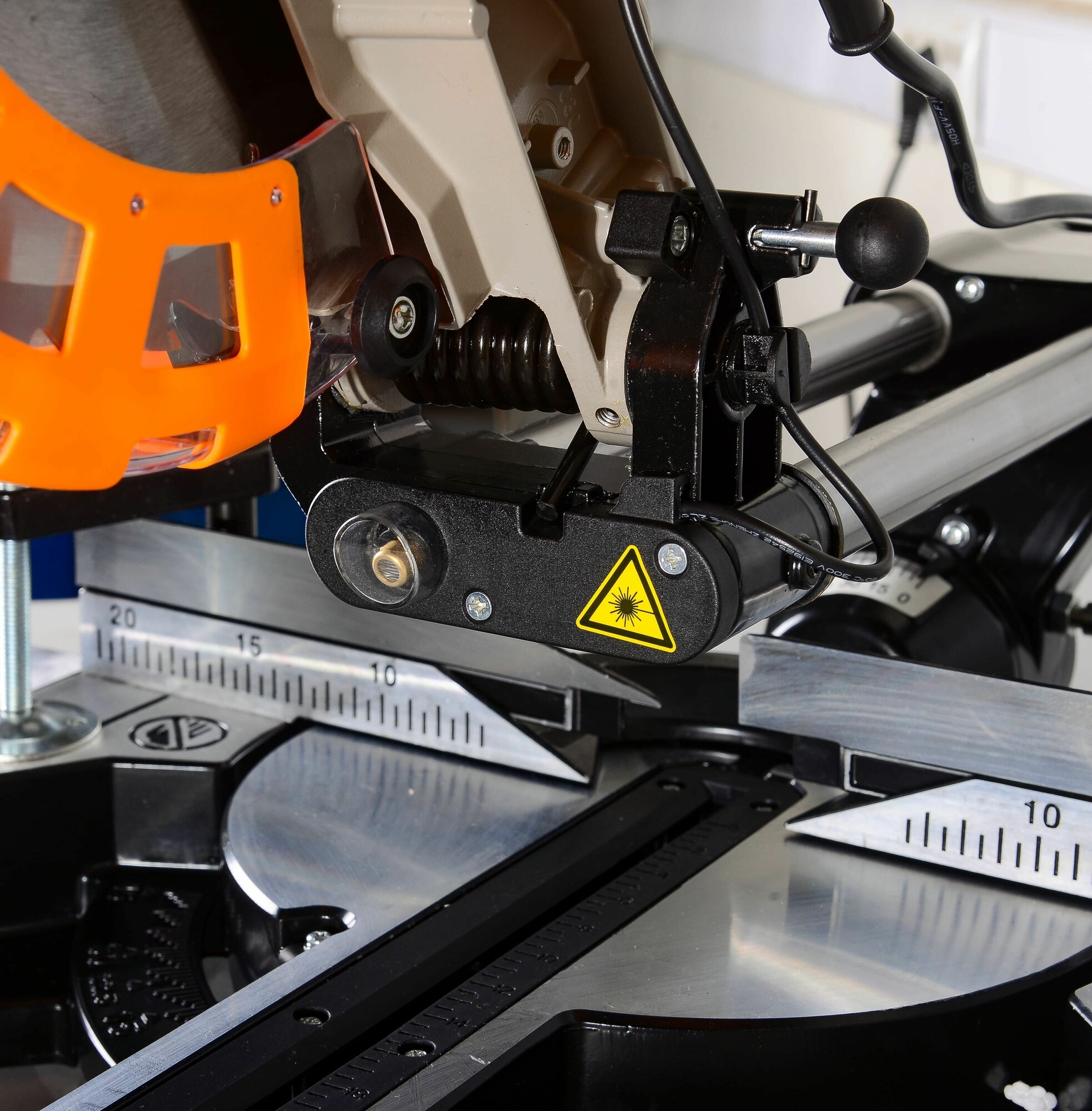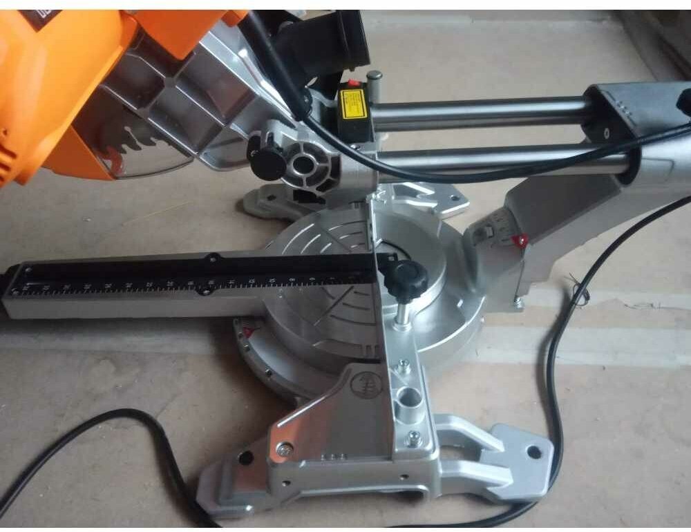 Description: Type: miter saw, laser marker, blade diameter: 255 mm, 90° cut depth: 80 mm, 90° cut width: 340 mm, traction, mains powered, functions: cutting depth adjustment, bevel cut/cut, design features : V