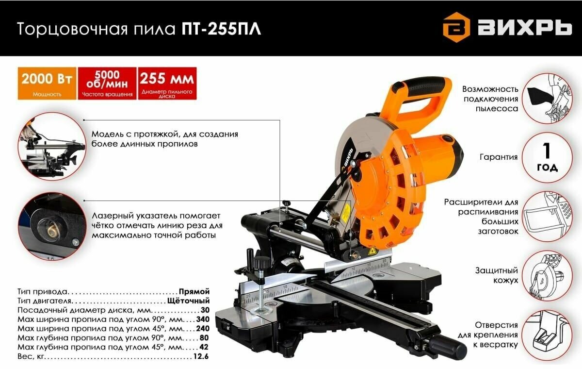Design features: The ability to connect a vacuum cleaner, laser marker, dust collector, Dust removal, Vacuum cleaner connection