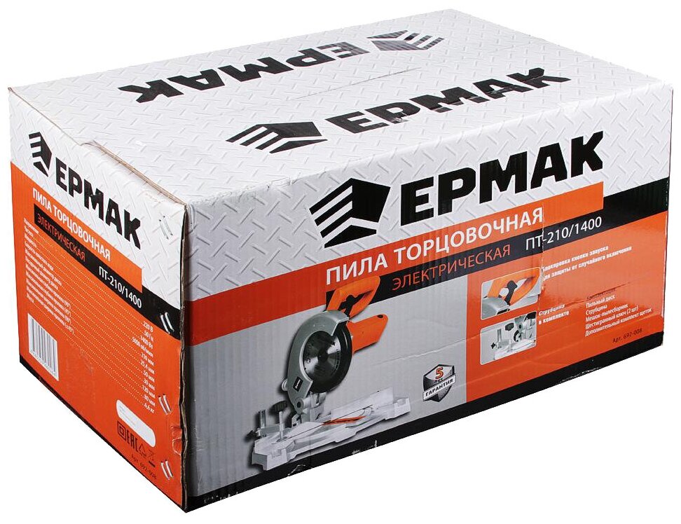 Type: miter saw, disc diameter: 210 mm, Power W: 1400, cutting depth 90°: 50 mm, power supply: from the mains, design features: the ability to connect a vacuum cleaner, dust collector, number of speeds: 1