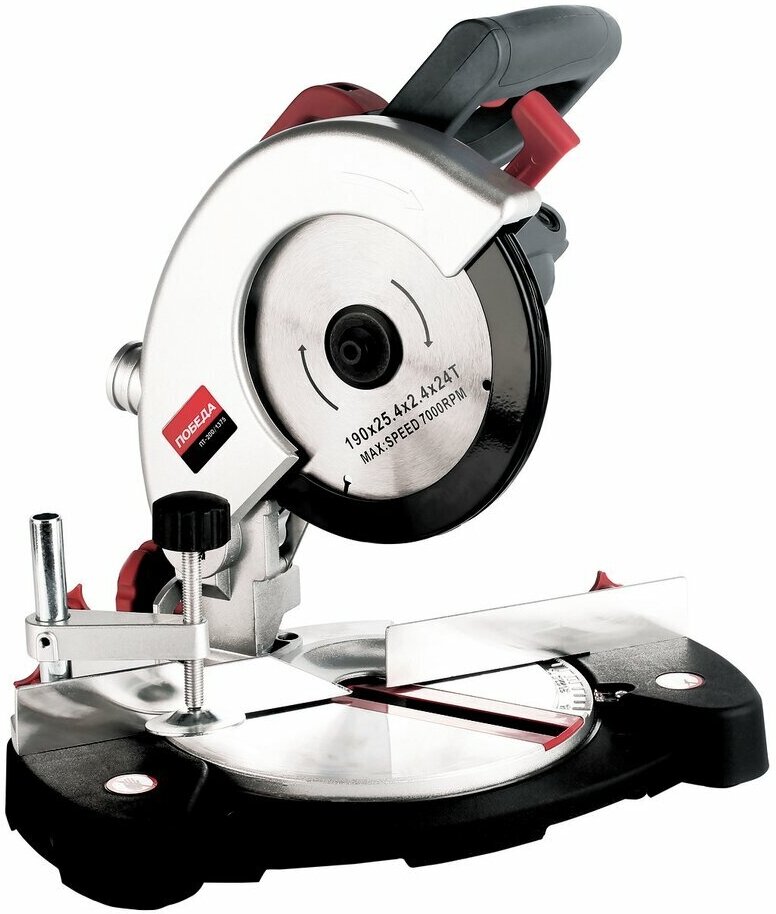 Type: miter, disc diameter: 190 mm, Power W: 1375, power supply: mains, design features: the ability to connect a vacuum cleaner, number of speeds: 1