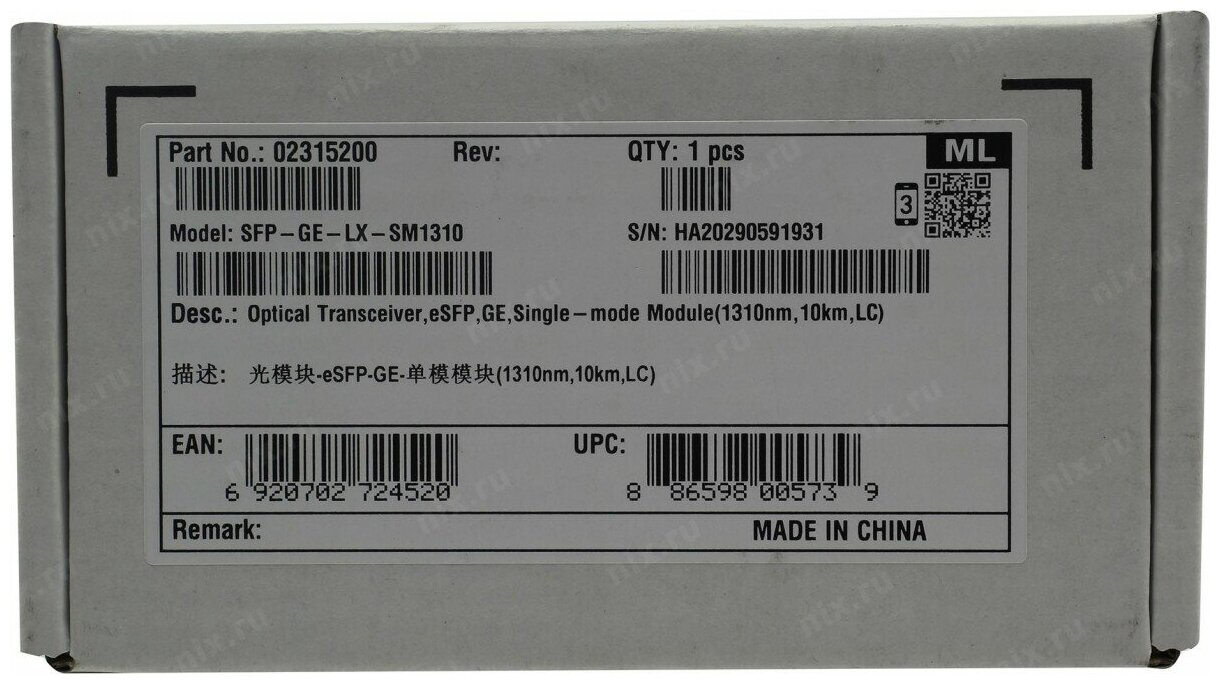Interface: Ethernet 1000BASE-LH, connector: LC Simplex, operating mode: bi-directional duplex, transmission rate: 1 Gbps, fiber type: single-mode SM