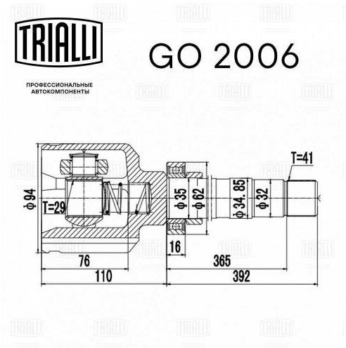 CV joint Int. Right. For A/M Fiat Ducato 94- 1800 Kg. Trialli art. GO2006