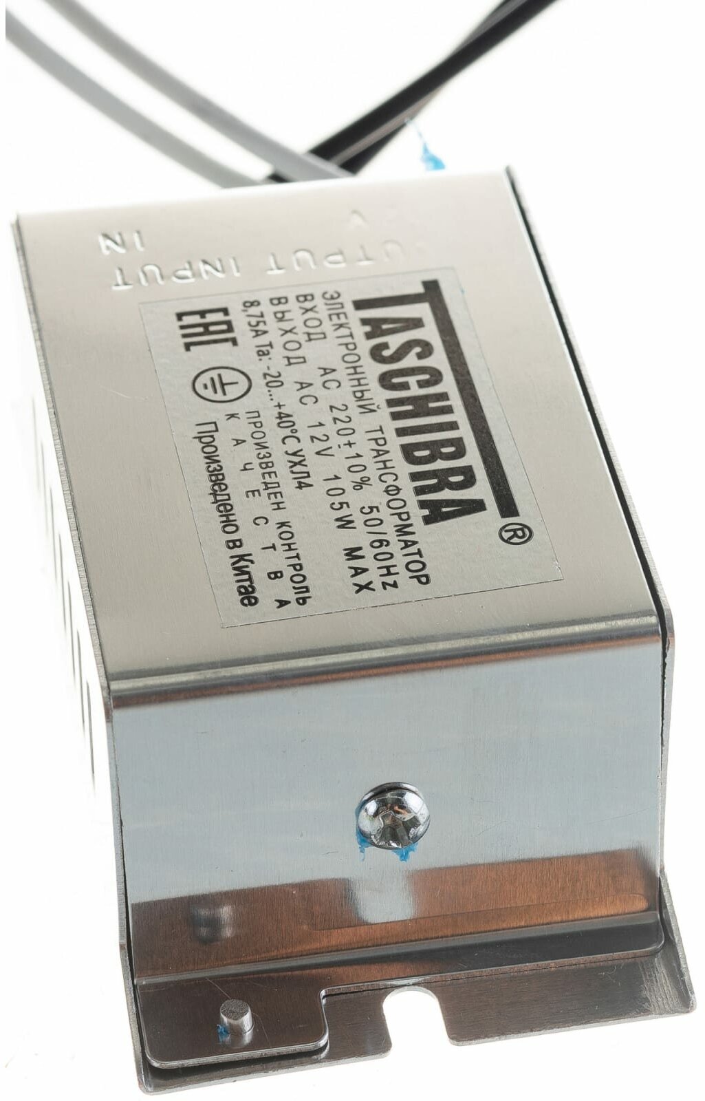 Type of transformer: electronic, principle of operation: step-down, power: 105 W, input voltage: 230 V, output voltage: 12 V, input network frequency: 50 Hz