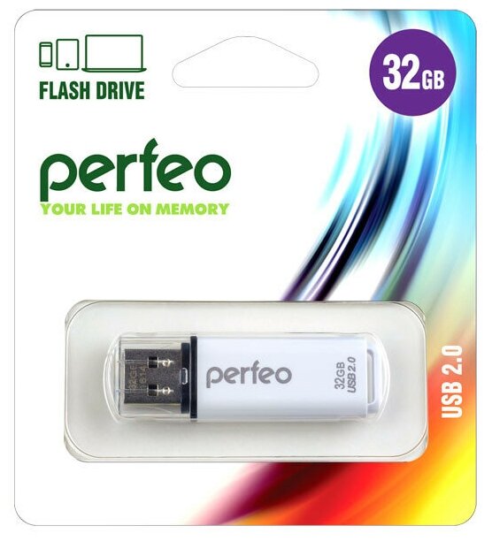 Flash drive USB 2.0 32GB Perfeo C13, white