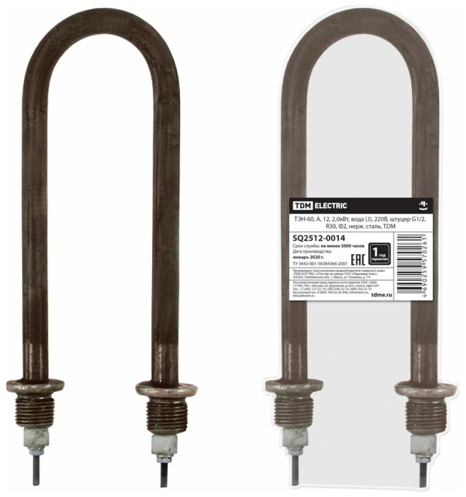 12, 2.0kW, J, 220V, G1/2, R30, Ф2, stainless steel TDM Electric SQ2512-0014