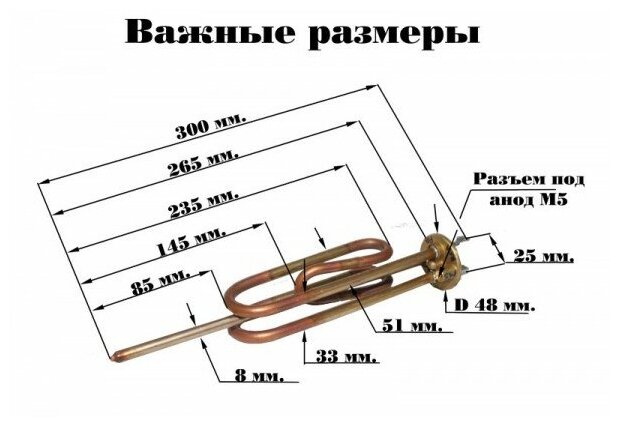 Type: tubular, purpose: for water heater, climate equipment manufacturer: THERMOWATT, material: copper, dry, power: 2 kW, mains voltage: 220 V, flange diameter: 48 mm