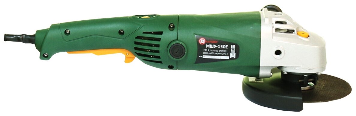 Type of power supply: mains, max. disc diameter: 150 mm, design features: power button lock, two-handed, additional handle, spindle lock, power consumption: 1200 W, packaging: box, max. frequency