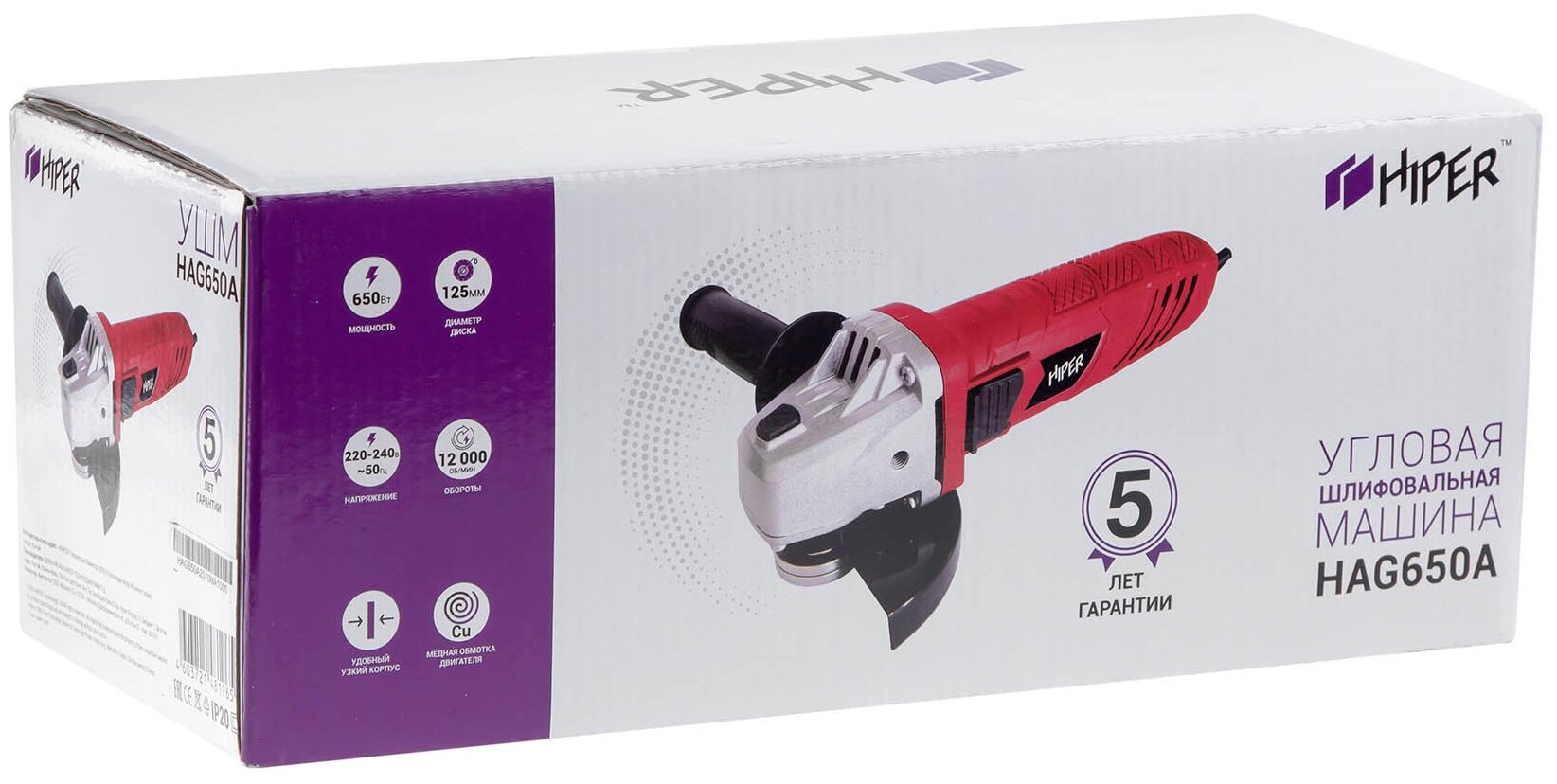 Angle grinder HIPER HAG650A, 650 W, 125 mm