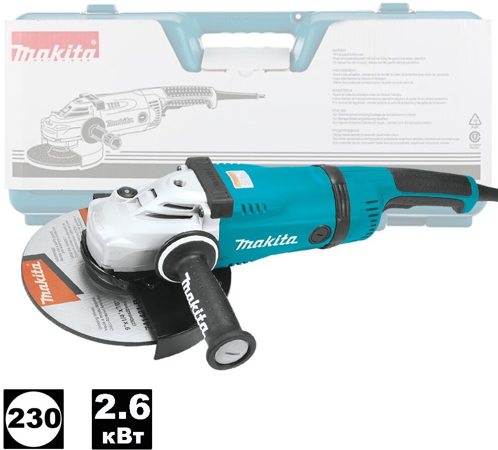 Type of power supply: mains, max. disc diameter: 230 mm, design features: power button lock, additional handle, spindle lock, power consumption: 2600 W, packaging: case, max. speed disc