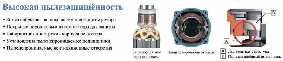 Design features: Power button lock, additional handle, dust collector, spindle lock