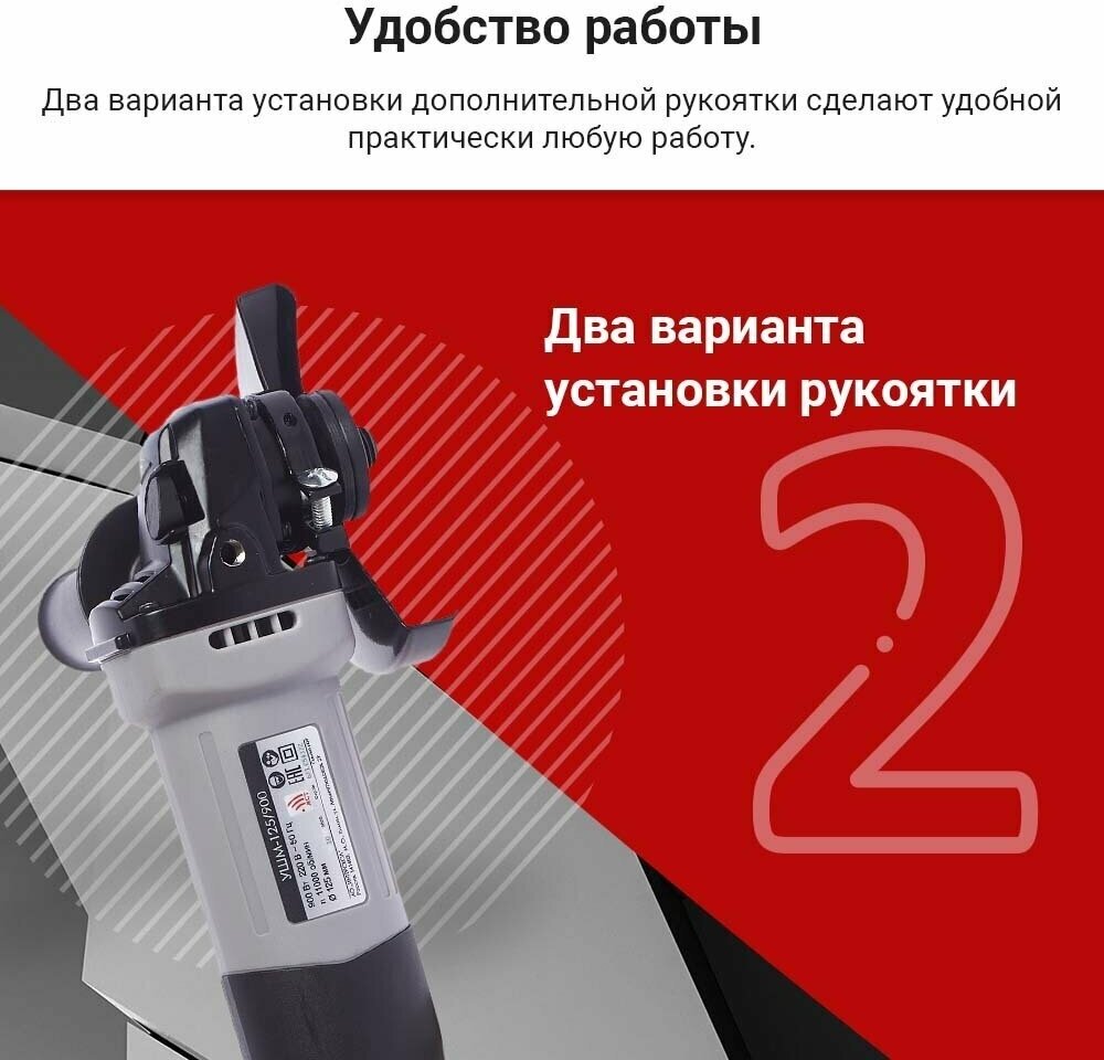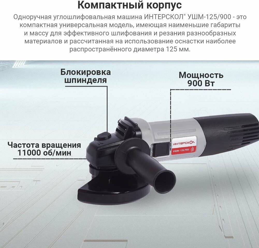 Type of power supply: mains, max. disc diameter: 125 mm, design features: power button lock, additional handle, spindle lock, power consumption: 1450 W, max. disk speed: 11000 rpm, weight