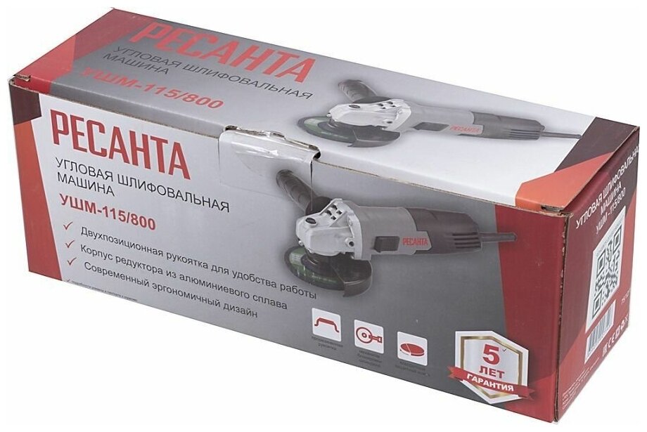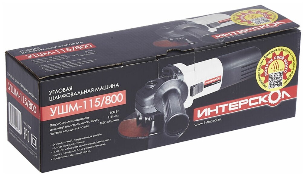 Common tooling diameter, Powerful high-performance motor, Light weight for fatigue-free work INTERSKOL UShM-115/800 589.1.0.00, Compact gearbox size for access to hard-to-reach places, Valves