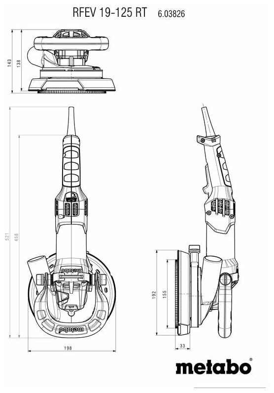 Type of power supply: mains, max. disc diameter: 125 mm, power consumption: 1900 W, functions: soft start, speed control, speed stabilization system, design features: additional handle, lock