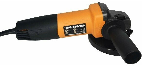 Type of power supply: mains, max. disc diameter: 125 mm, design features: additional handle, spindle lock, brush replacement indiscriminately, protective cover, power consumption: 950 W, max. Disc RPM: 110