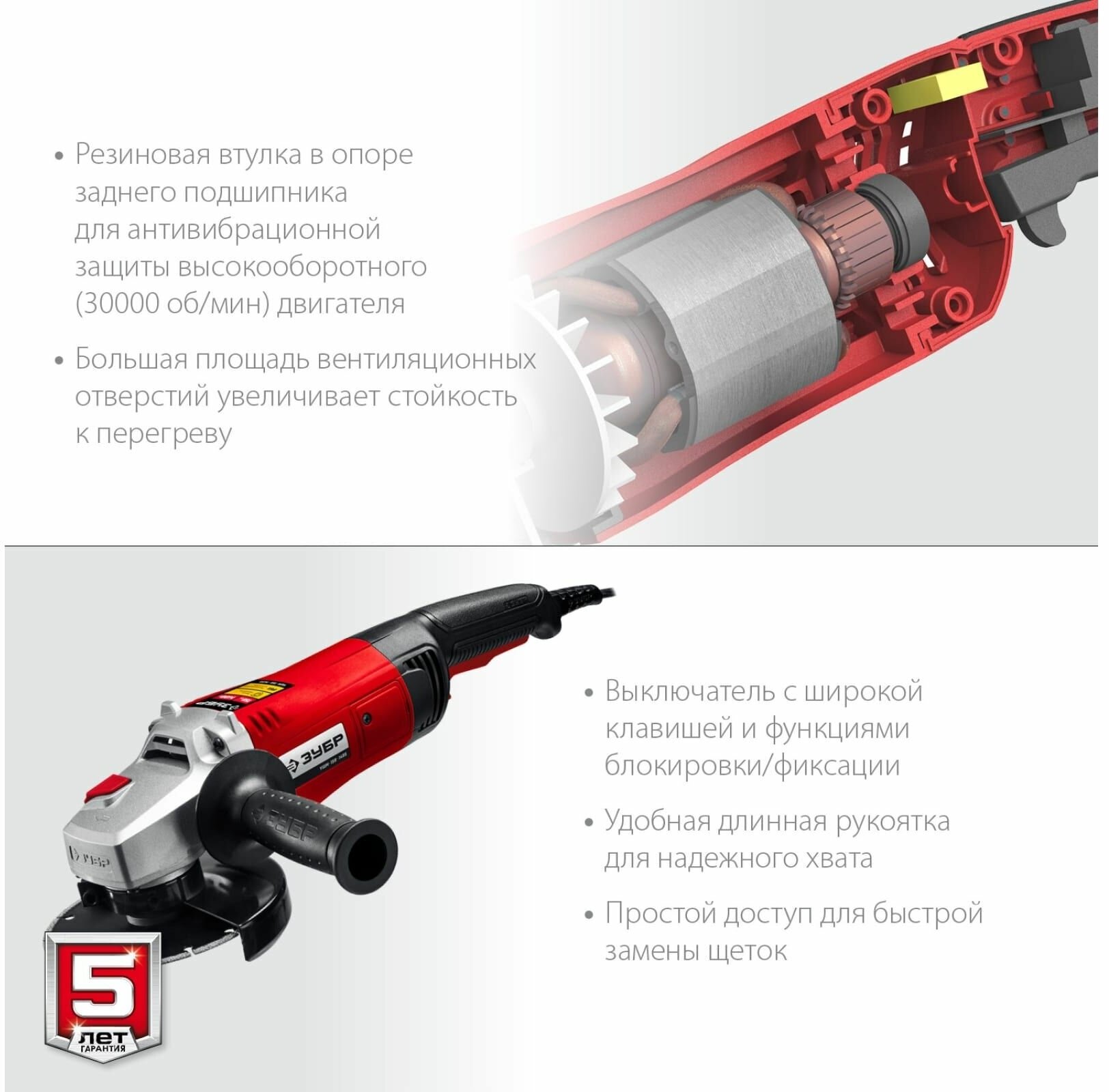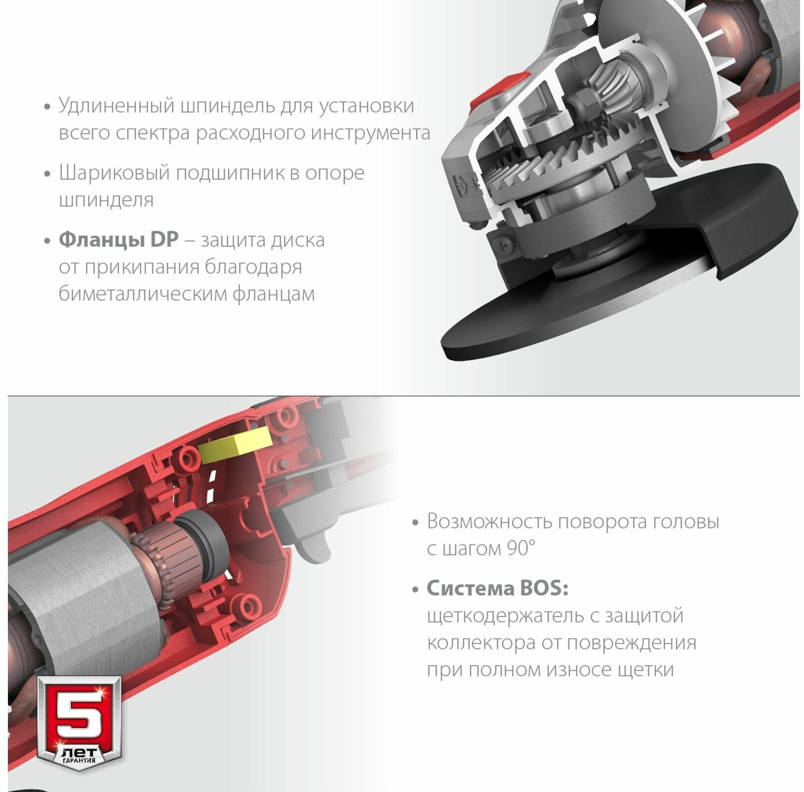 Type of power supply: mains, max. disc diameter: 125 mm, design features: power button lock, additional handle, spindle lock, power consumption: 1450 W, max. disk speed: 11000 rpm, weight