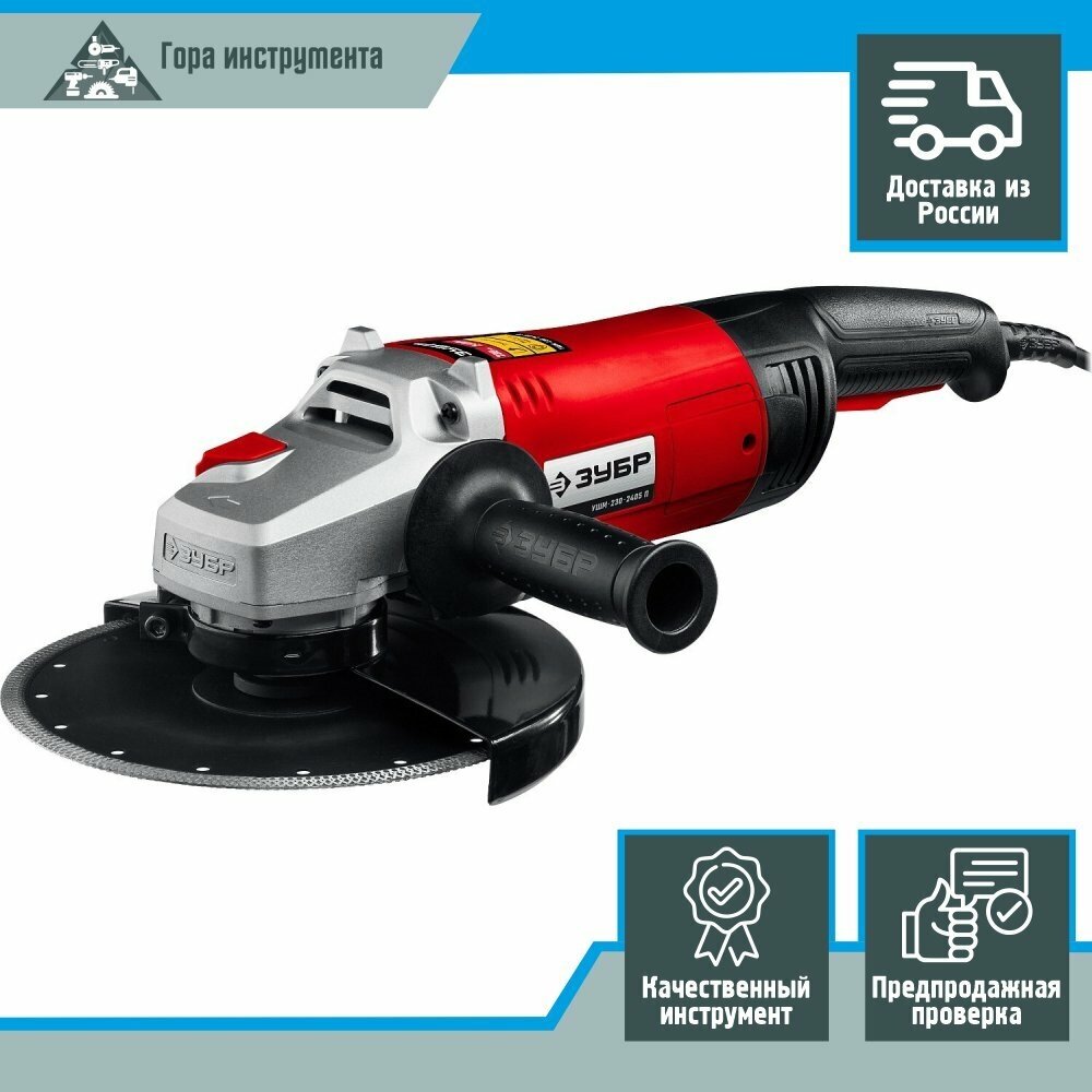 Type of power supply: mains, max. disc diameter: 230 mm, design features: power button lock, two-handed, additional handle, spindle lock, protection against unintentional start-up, Superflange, Button lock