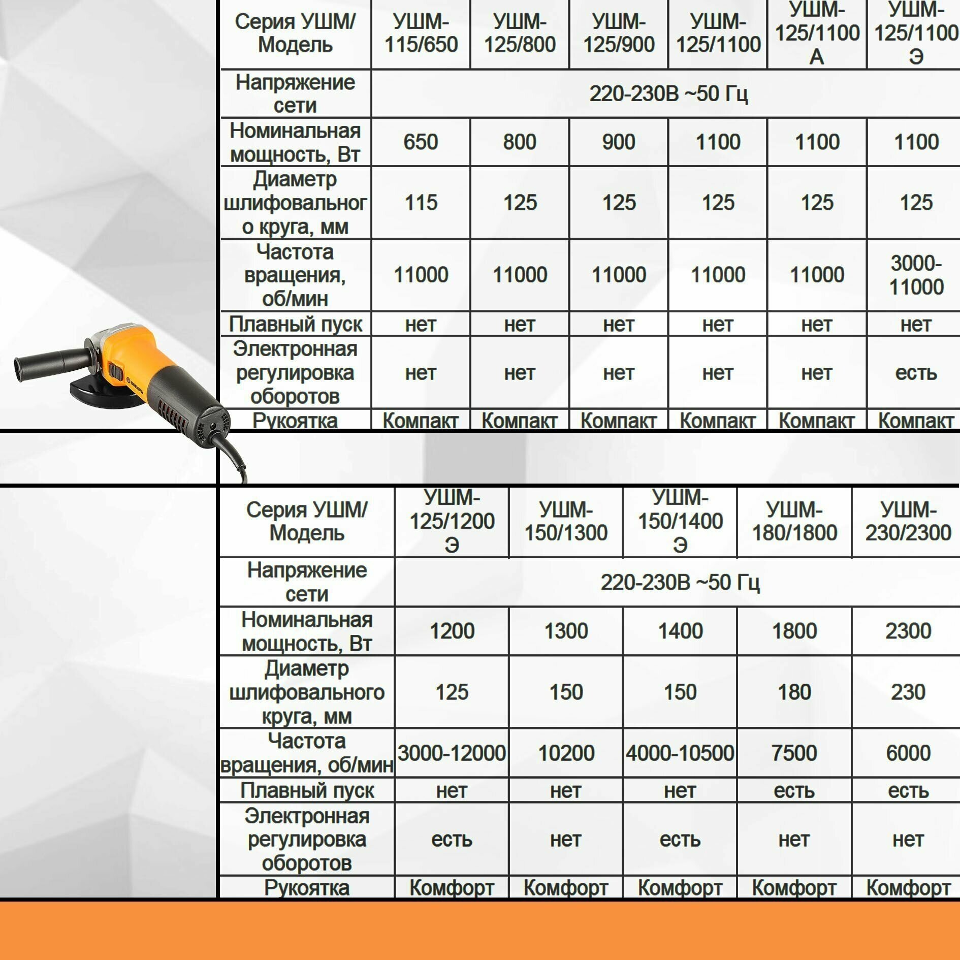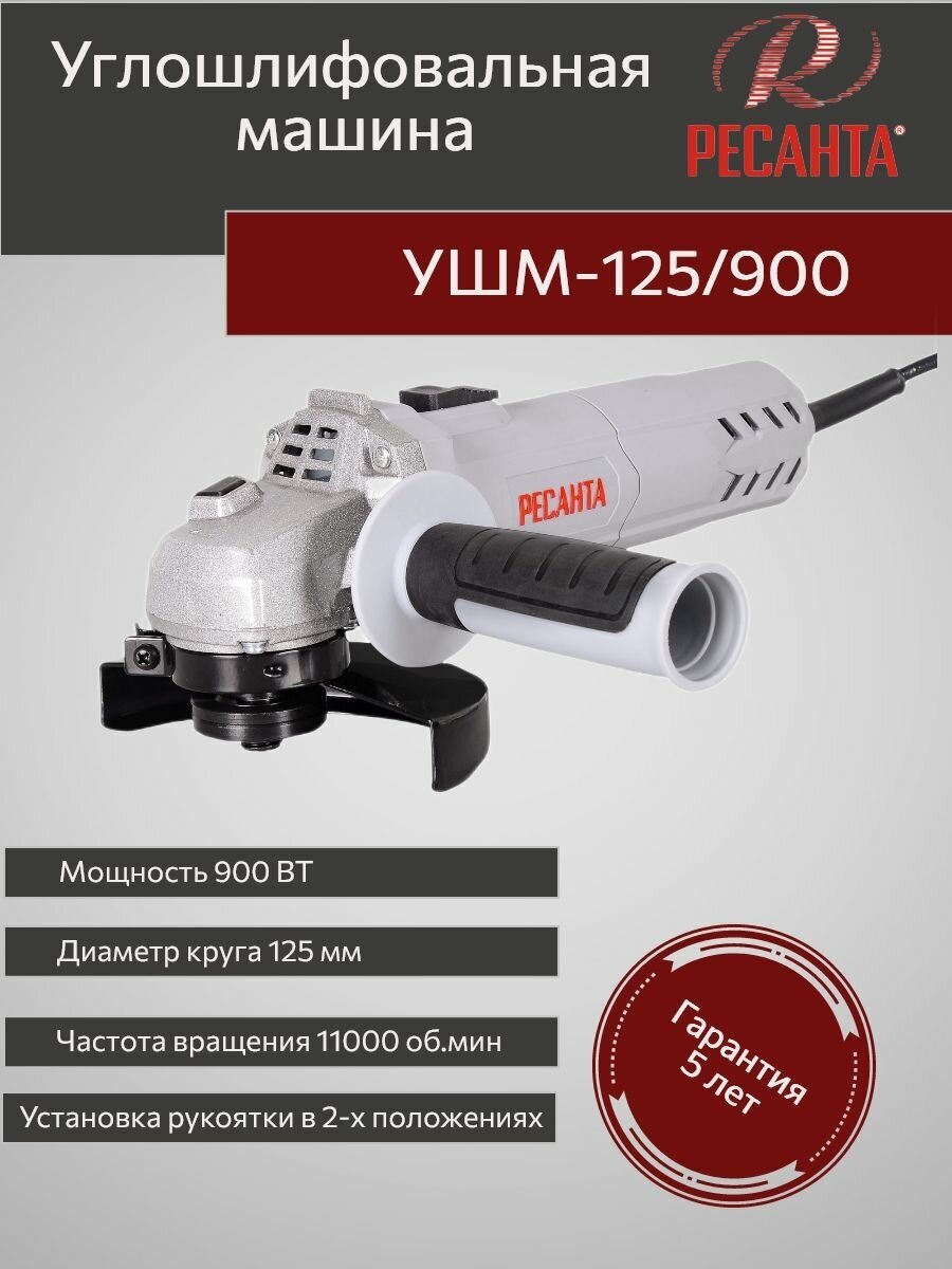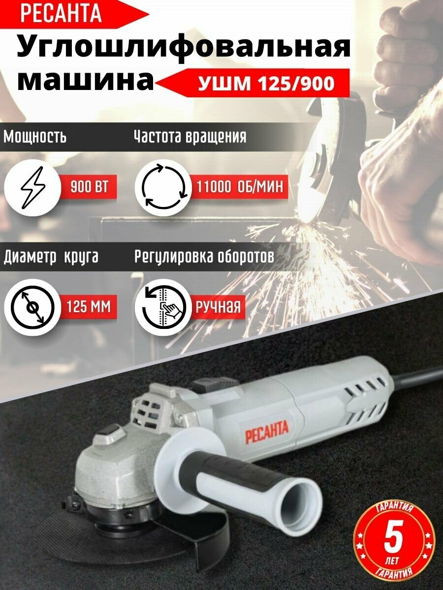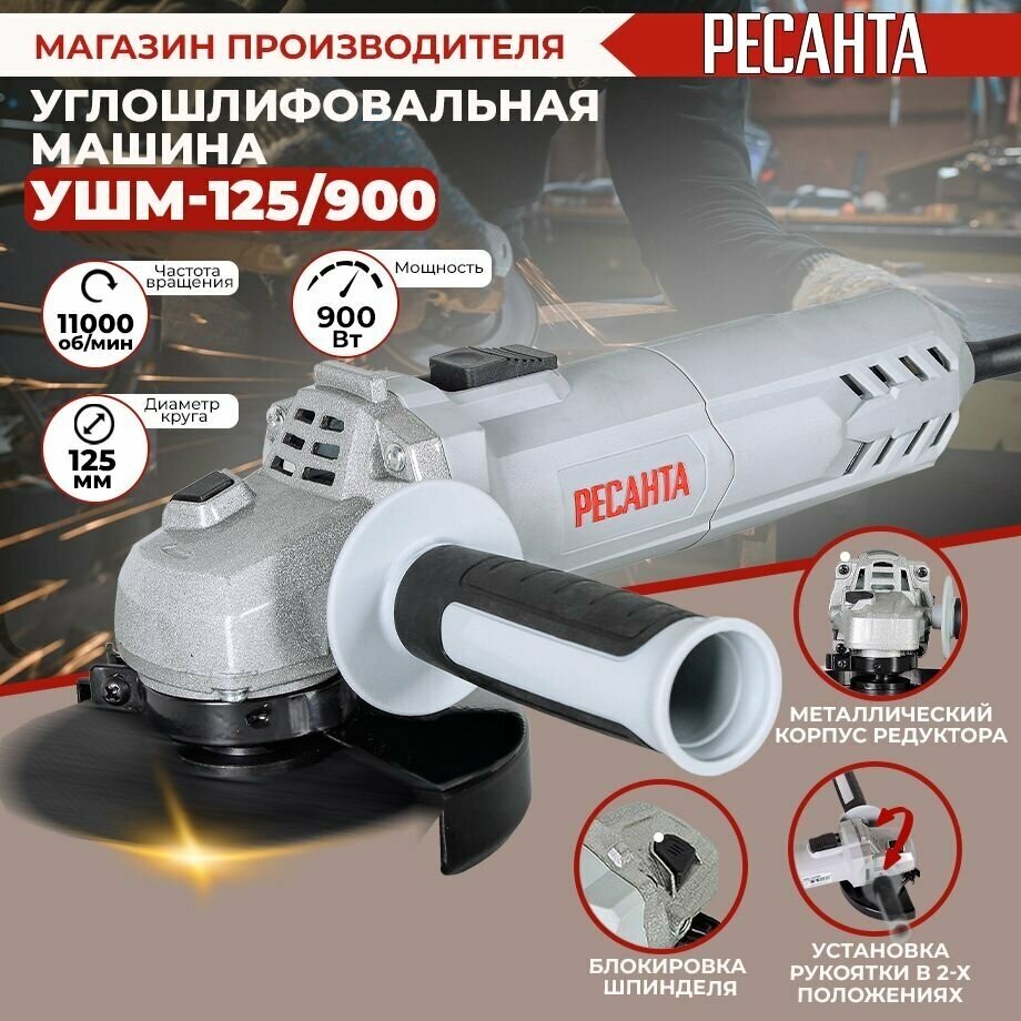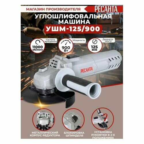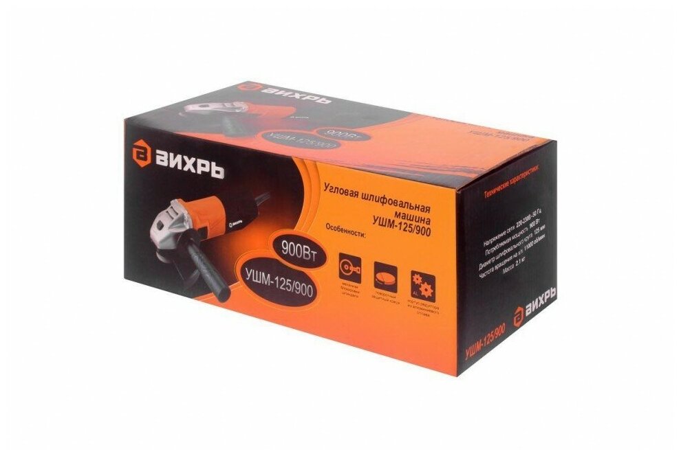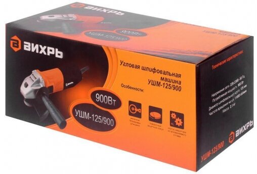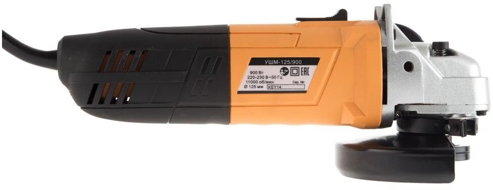 Type of power supply: mains, max. disc diameter: 125 mm, design features: additional handle, spindle lock, power consumption: 900 W, max. disk rotation speed: 11000 rpm, number of disks: 1