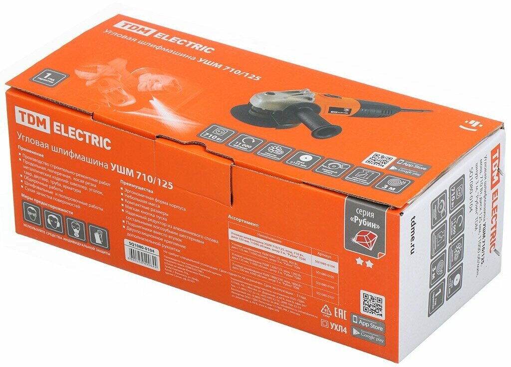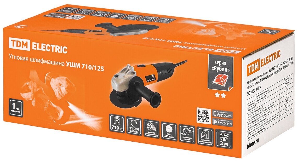 Angle grinder UShM 710/125, power. 710 disc 125 mm, 11000 rpm, cord 3 m, Ruby TDM {SQ1080-0104}
