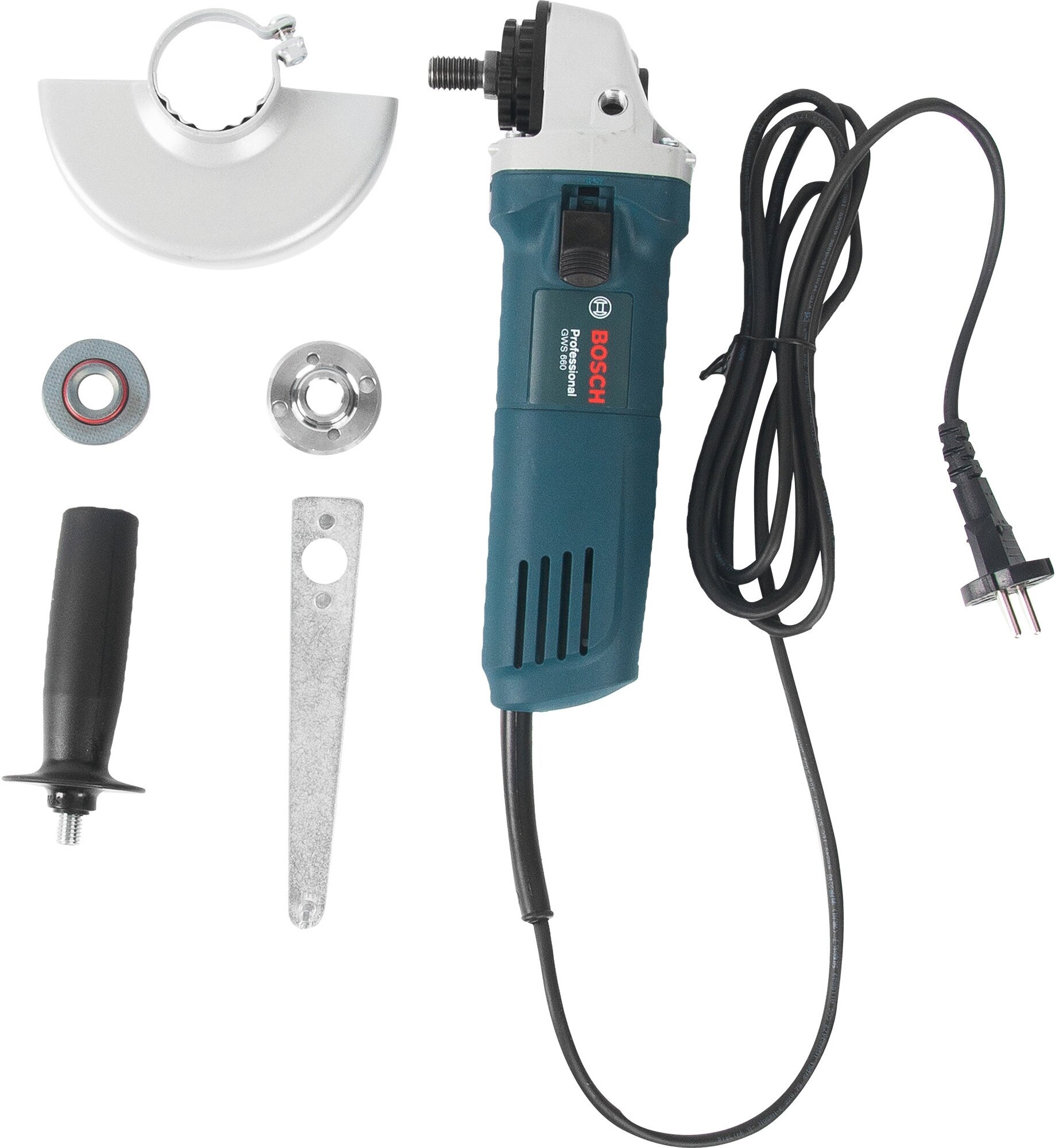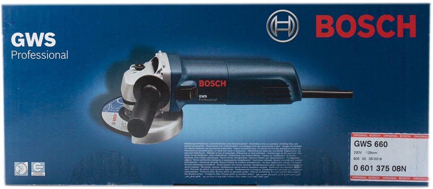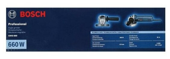 Type of power supply: mains, max. disc diameter: 125 mm, design features: power button lock, additional handle, spindle lock, rubber-coated handles, power consumption: 660 W, packaging: k