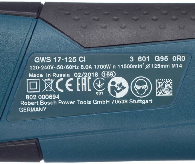 Type of power supply: mains, max. disc diameter: 125 mm, design features: power button lock, additional handle, spindle lock, power consumption: 1450 W, max. disk speed: 11000 rpm, weight
