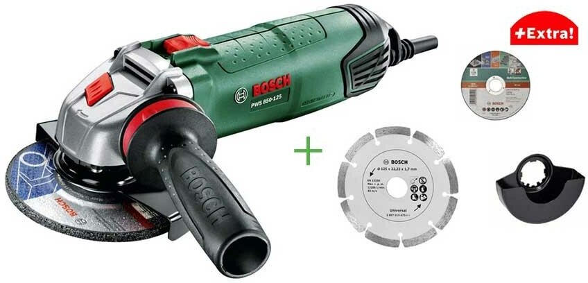 Type of power supply: mains, max. disc diameter: 125 mm, design features: anti-vibration system, power button lock, additional handle, spindle lock, power consumption: 850 W, packaging: box